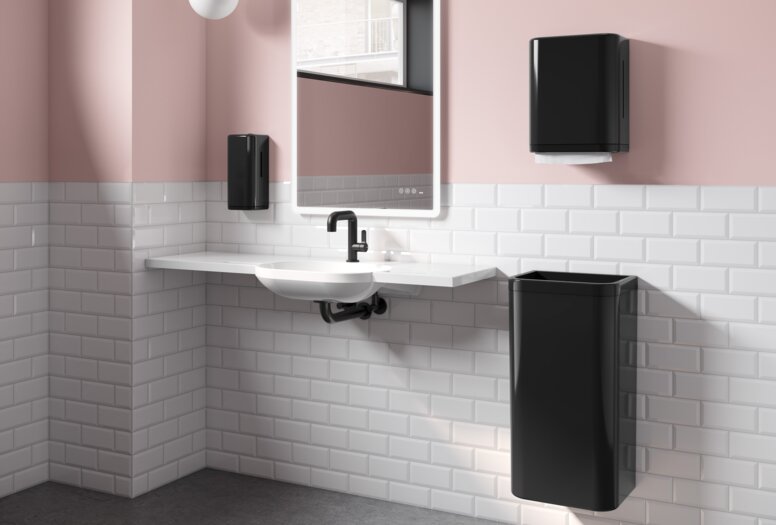 Die glänzenden Spenderprodukte der Serie 477/801 stehen ab sofort in Schwarz sowie in Weiß mit rosafarbenen Rahmenelementen zur Verfügung. Beide Farbvarianten ergänzen die erfolgreiche Sanitärserie um ausdrucksstarke Gestaltungsmöglichkeiten – von klassisch-elegant bis modern-akzentuiert.