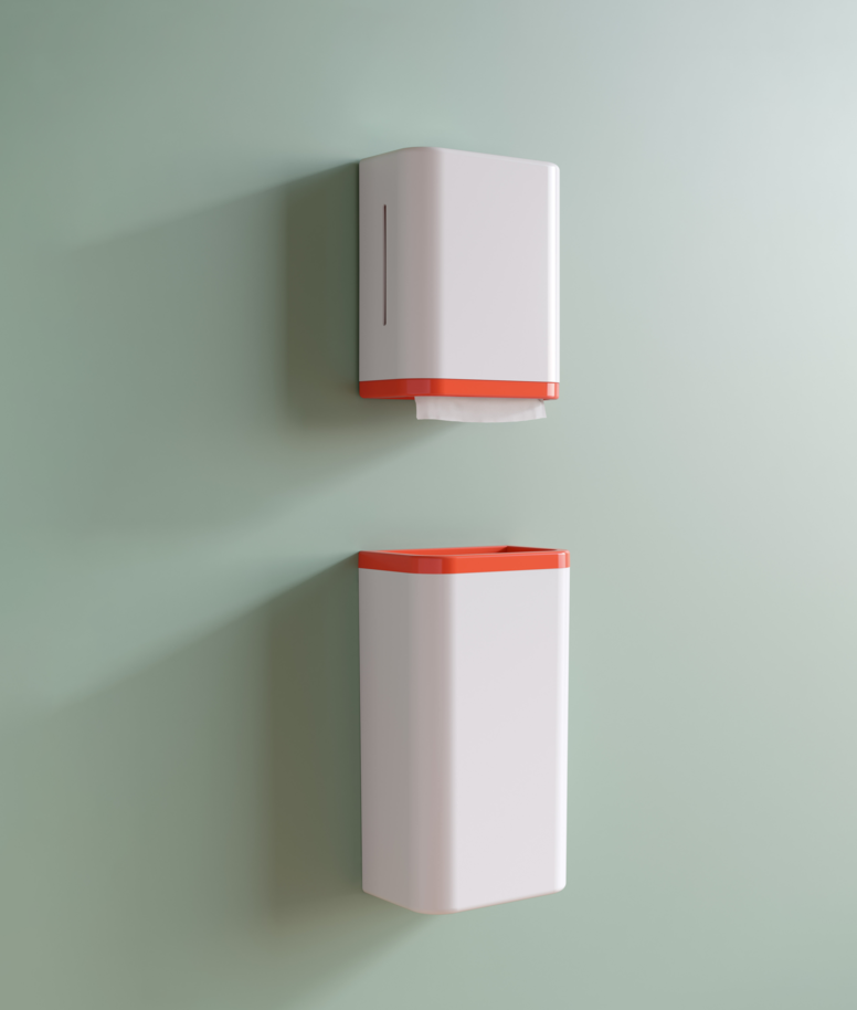 Vollständig ausgestattet sind Sanitäranlagen in Kitas und Kindergärten mit weiteren Spenderlösungen, z. B. für Papier und Mülleimer. Abgerundete Kanten und farbige Rahmenelemente sorgen für mehr Sicherheit und setzen stimmige Farbakzente.