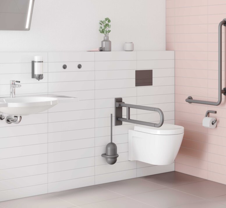 Das HEWI System 900 setzt hier Maßstäbe: Neben Edelstahl matt und Pulverbeschichtungen in Schwarz, Weiß und Grautönen stehen nun auch exklusive PVD-Farben zur Verfügung – darunter Schwarzchrom, Kupfer und Messing. Diese Oberflächen eröffnen neue Möglichkeiten, Barrierefreiheit und anspruchsvolle Innenarchitektur miteinander zu verbinden. Sie bieten nicht nur höchste Funktionalität im Pflege- und Gesundheitsbereich, sondern erfüllen auch die Designansprüche von Hotels und hochwertigen Wohnobjekten.