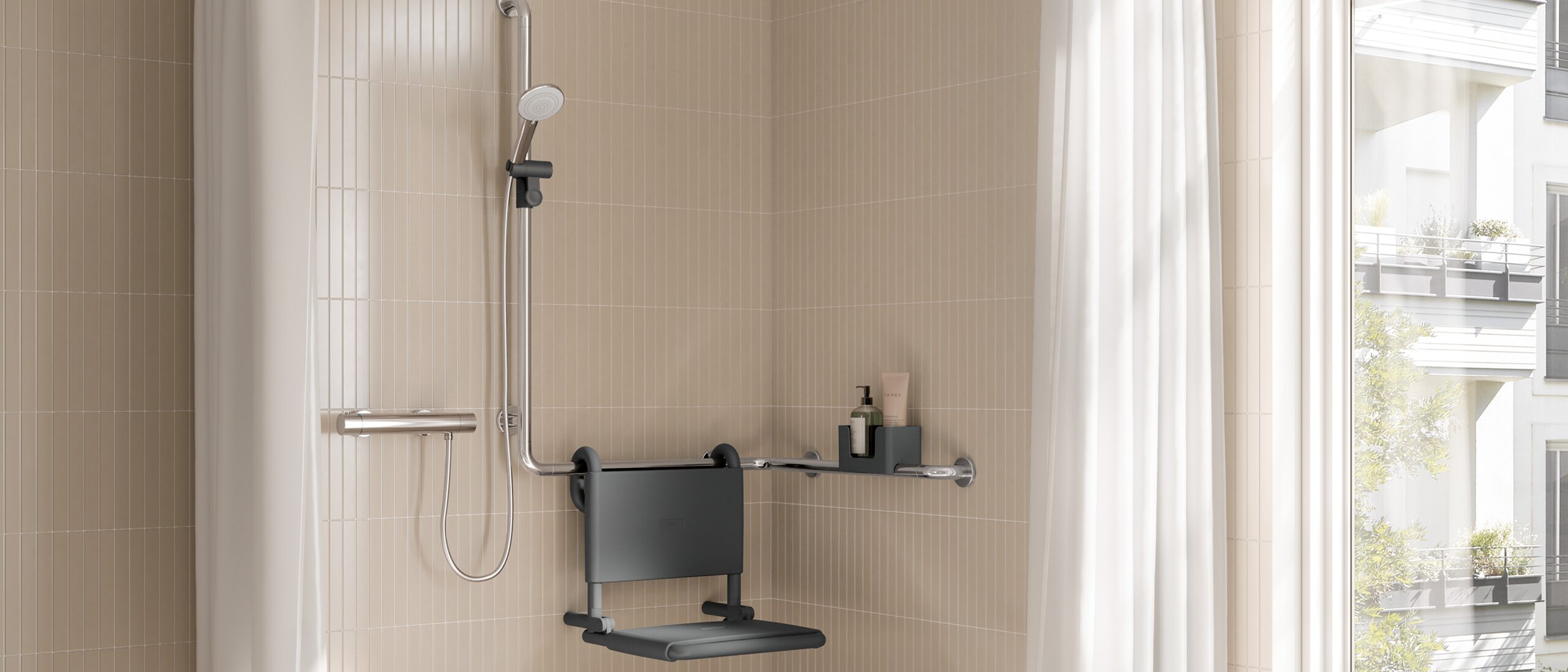 In addition to the materials used, the products also play a major role in everyday use. This is because, in addition to the high humidity, rheumatism patients suffer particularly from contact with cold objects. Sensitivity to cold poses a significant challenge, as it can cause not only discomfort but also additional pain. As the people affected are often unsteady on their feet and have to rely on aids such as hinged support rails, grab rails or shower handrails, products with warm haptic properties are essential to ensure not only the physical but also the emotional comfort of these people.