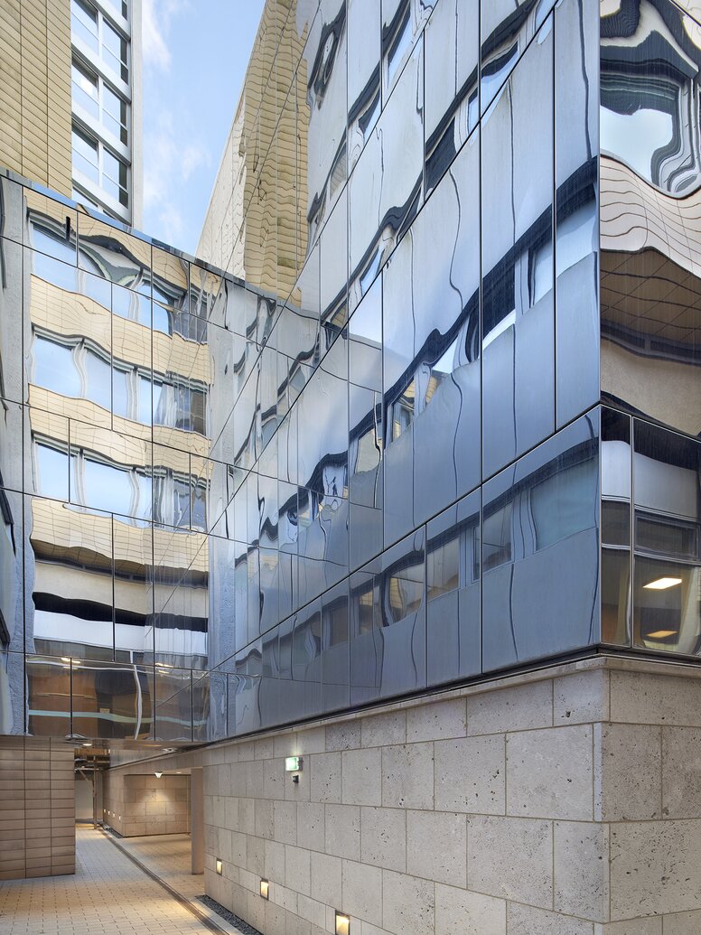 The polished stainless steel façade of the "Cube" appears almost invisible thanks to its highly reflective properties.