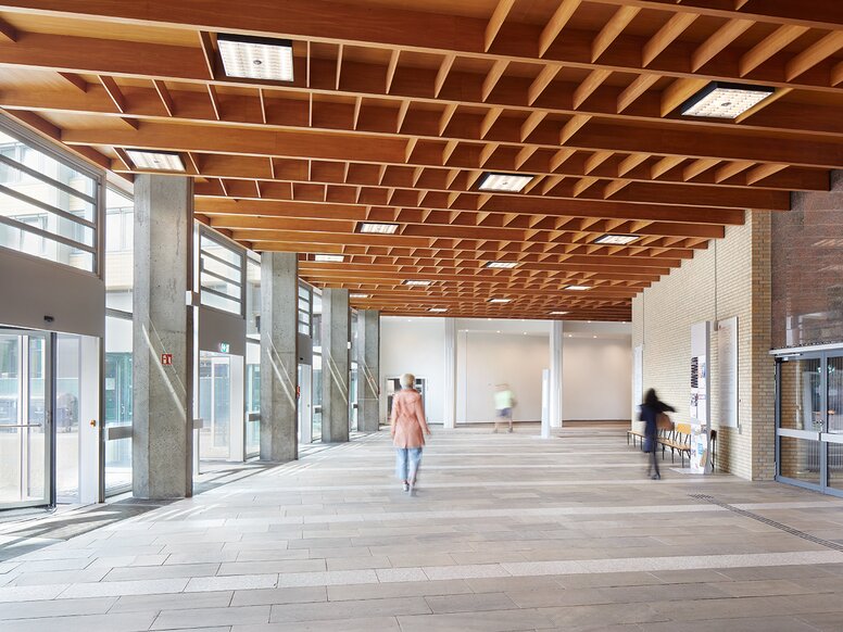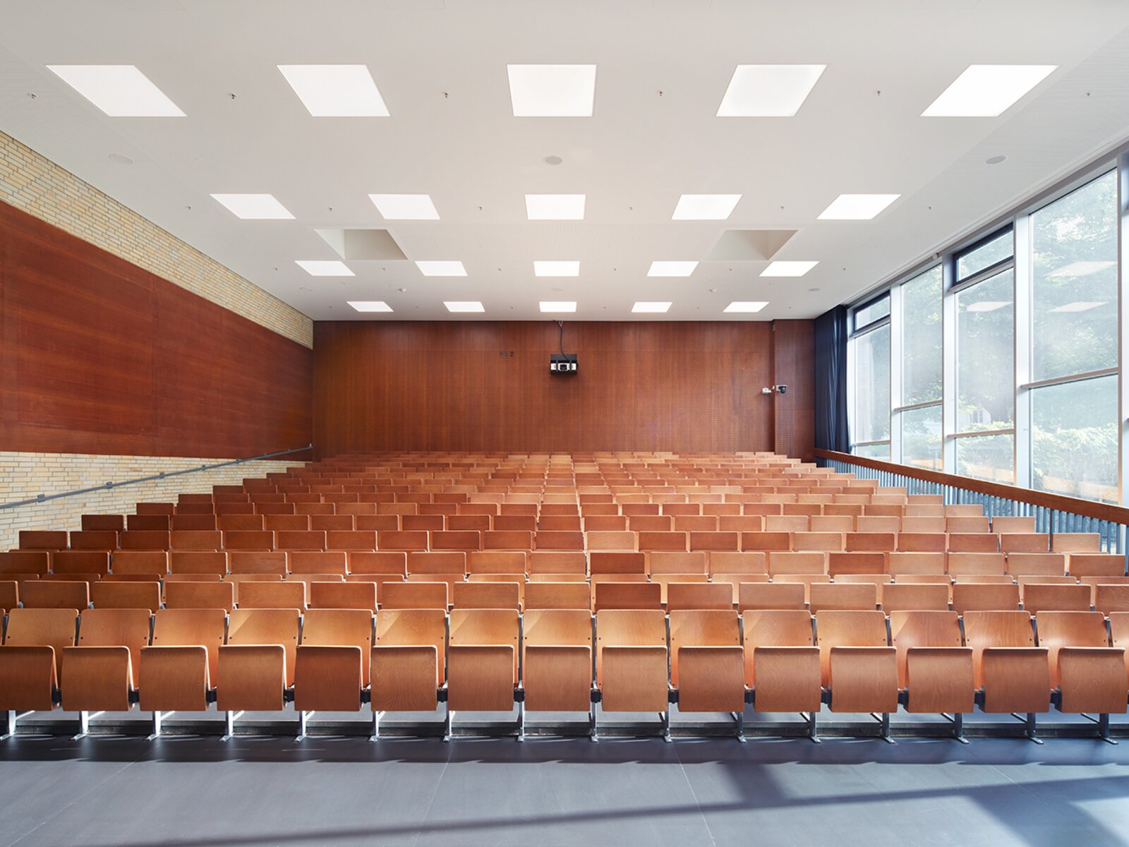 In the listed foyer of the auditoriums, the radiant ceiling heating was rebuilt according to the original design.